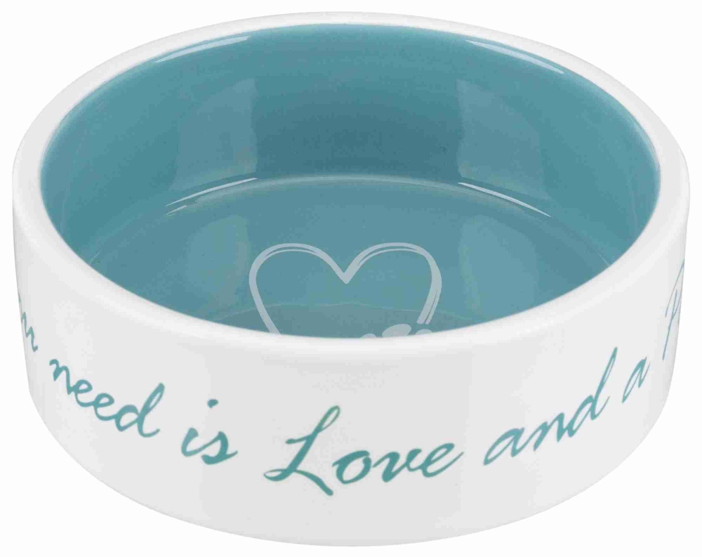 Acest castron ceramic pentru caini este perfect pentru a asigura hrana sau apa proaspata si curata pentru prietenul dumneavoastra patruped. Culoare: crem/petrol. Capacitate: 0.8 l Diametru: 16 cm