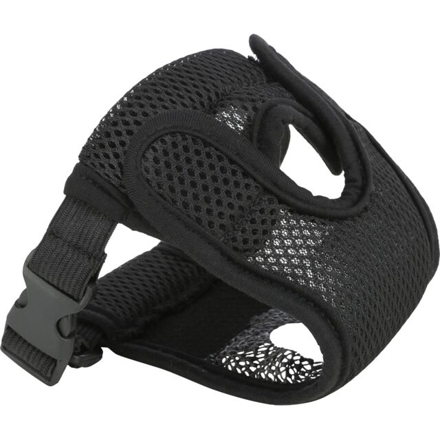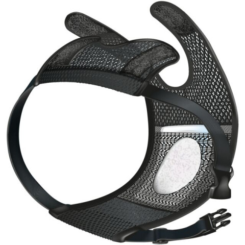 Cu elemente de fixare Velcro pentru o atasare usoara fara a trage tija Material plasa respirabil Centura elastica, reglabila Insertie din plasa pentru o buna absorbtie a umiditatii Inclus 3 insertii de schimb Poliester/Spandex Culoarea neagra