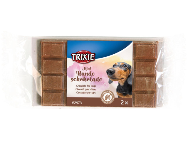 Ciocolata speciala pentru caini de talie mica. Fara teobromina (fara cacao). Contine vitamine esentiale. Compozitie: lapte si produse lactate (38 %), uleiuri si grasimi, zaharoza, subproduse vegetale, minerale | formula fara gluten | A se pastra intr-un loc racoros si uscat.)