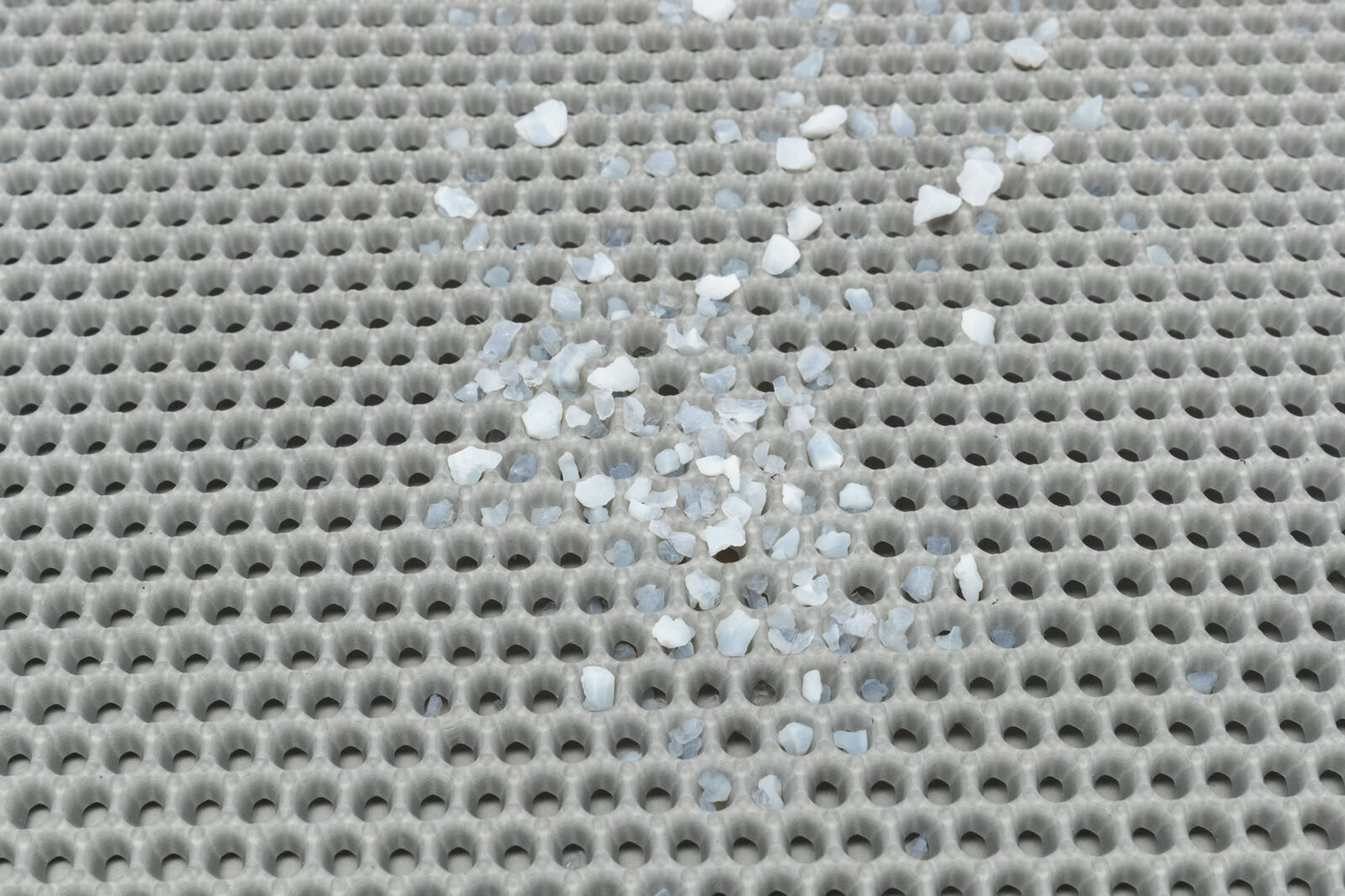 Covorasul ajuta la pastrarea igienei din zona litierei pisicii. Asternutul ramas pe labute cade printre orificiile covorului si se colecteaza in interiorul sau. Astfel, micsorati cantitatea de nisip imprastiat in incapere. Periodic, rasturnati asternutul colectat inapoi in litiera. Material: EVA. Usor de curatat. Dimensiune: 40×55 cm. Culoare: Gri