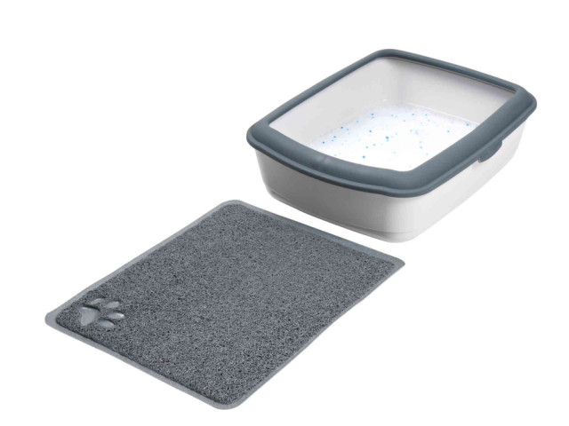 Covorasul ajuta la pastrarea igienei din zona litierei pisicii. Acesta reduce imprastierea nisipului in locuinta, retine nisipul de pe labute. Material: PVC. Culoare: antracit. Baza antialunecare