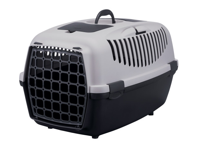 Cusca de transport pentru pisici si caini. Usa din fata permite scoaterea si punerea animalului in trasportor. Ideal pentru vizitele la veterinar. Ventilatie optima datorita orificiilor din partea superioara a transportorului Cu maner: pentru un transport comod Capacitate maxima: 12 kg Culoare: gri Material: plastic Fixare: cu cleme Masuratori: 61 × 40 × 38 cm Greutate: 2,1 kg pana la: 12 kg Lungime: 61 cm, Latime: 40 cm, Inaltime: 38 cm