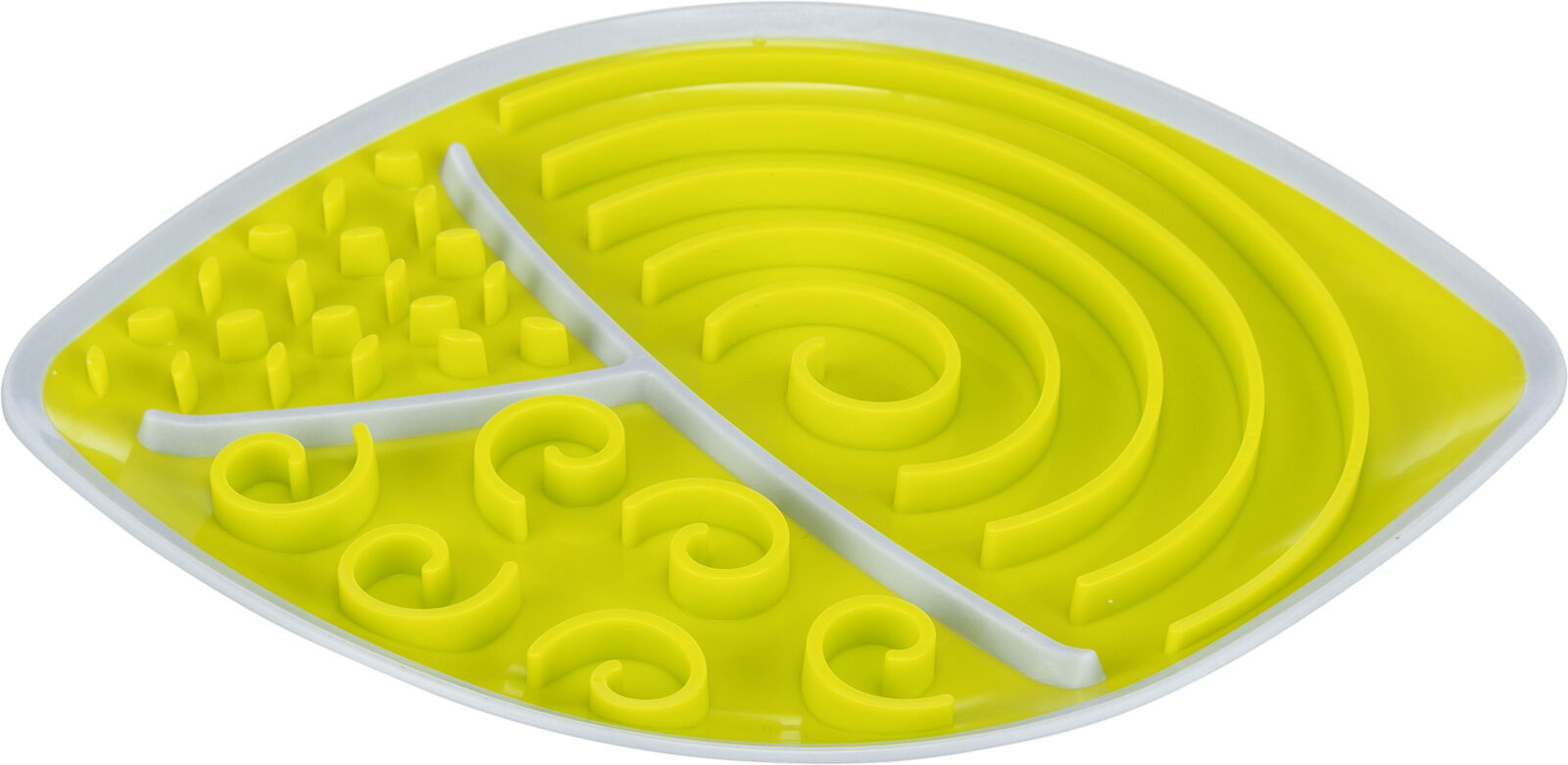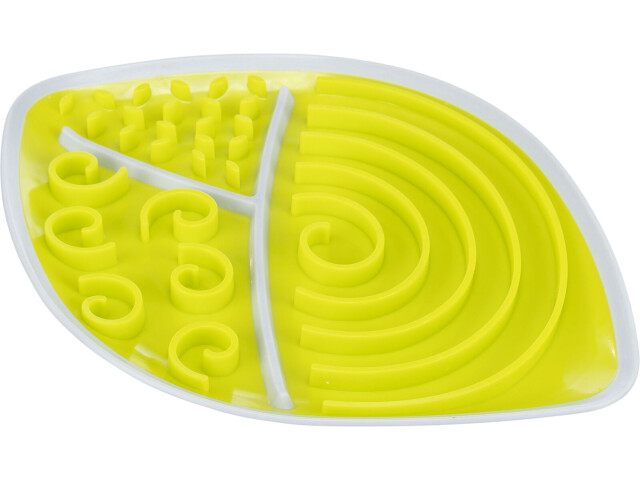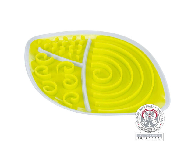aport redus de gustari intr-o perioada lunga de activitate poate fi acoperita de ex. cu hrana sub forma de pasta, hrana umeda sau produse lactate umpleti cu gustari si congelati pentru o surpriza proaspata janta retine lichidele colturi antiderapante TPR/plastic conforma cu bunastarea animalelor in conformitate cu sectiunea 18 (AT) Distractie versatila de lins Linsul relaxeaza cainii si ofera perioade de odihna. Un ajutor optim in acest scop este farfuria de lins Lick’n’Snack: Prin micile deschideri sau canale, prietenul tau cu patru picioare ia doar cantitati mici de gustari si este ocupat mult timp. Puteti acoperi farfuria cu diferite tipuri de hrana sub forma de pasta, produse lactate sau chiar hrana umeda, pe care apoi cainele dvs. le poate linge cu placere. Este cald afara si vrei sa oferi cainelui tau o lovitura speciala de prospetime? Apoi umpleti jucaria cu iaurt sau hrana sub forma de pasta la alegere si puneti-o la congelator inainte de a incepe distractia de lins. Farfuria de lins poate fi curatata cu usurinta in masina de spalat vase.