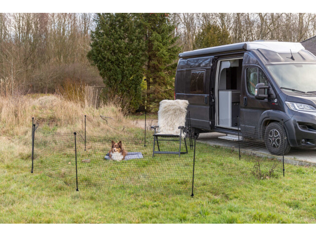Gard mobil pentru caini TRIXIE – Libertate si siguranta in deplasare Oferiti cainelui dumneavoastra aventuri sigure oriunde calatoriti cu gardul mobil pentru caini TRIXIE. Perfect pentru camping, vacante sau orice iesire in aer liber, acest gard portabil creeaza o zona spatioasa si sigura pentru prietenul dumneavoastra patruped, permitandu-i sa exploreze fara griji. Fabricat din materiale de inalta calitate si rezistente, este conceput pentru a face fata curiozitatii cainilor, oferind o delimitare de incredere. Caracteristici principale: Portabil si usor: Se ruleaza usor pentru depozitare compacta, incape fara efort in portbagajul masinii sau in geanta de calatorie. Montare rapida: Se asambleaza in cateva minute – introduceti stalpii rezistenti in pamant si fixati plasa pe clemele de prindere. Design robust: Realizat din materiale durabile pentru o utilizare indelungata si rezistenta la conditiile exterioare. Spatiu sigur si generos: Ofera o zona ampla pentru ca patrupedul sa se miste liber, ramanand in siguranta. Beneficii: Liniste sufleteasca: Impiedicati cainele sa se indeparteze sau sa intalneasca pericole in timpul aventurilor in aer liber. Utilizare versatila: Ideal pentru camping, iesiri la plaja, picnicuri sau orice situatie in care cainele are nevoie de un spatiu sigur. Calatorie fara griji: Compact si usor de transportat, este un accesoriu indispensabil pentru stapanii de animale in miscare. Caini fericiti: Permite cainelui sa exploreze si sa se joace intr-o zona delimitata in siguranta, imbunatatindu-i experienta in aer liber. Cum se foloseste: Derulati gardul mobil TRIXIE si intindeti-l pe sol. Introduceti stalpii rezistenti in pamant la intervale egale pentru a forma forma dorita a incintei. Fixati plasa pe clemele de prindere de pe fiecare stalp pentru a securiza gardul. Verificati stabilitatea gardului inainte de a permite cainelui sa intre in interior. La final, detasati plasa, scoateti stalpii si rulati gardul pentru o depozitare usoara. Faceti fiecare calatorie o aventura de neuitat pentru dumneavoastra si cainele dumneavoastra cu gardul mobil TRIXIE – unde siguranta intalneste libertatea