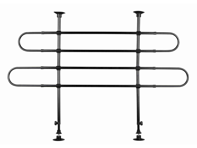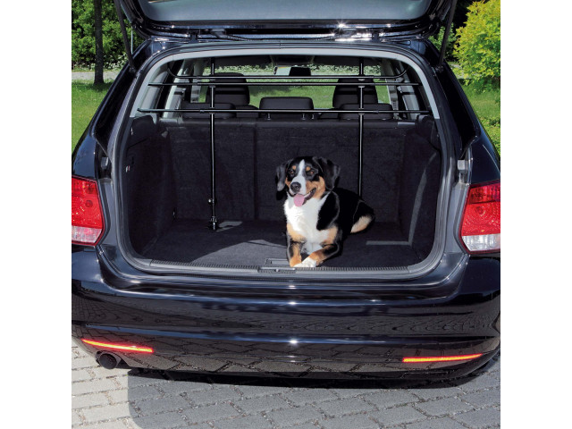 – clema telescopica intre zona de incarcare si acoperisul interior al masinii – tije verticale inclinate pentru utilizarea intregului spatiu de incarcare – complet reglabil pe latime si inaltime – metal, lacuit Important: Pentru o protectie completa impotriva accidentelor, utilizati un ham de siguranta certificat pentru masina. Latime: 85-140 cm. Inaltime: 75-110 cm.