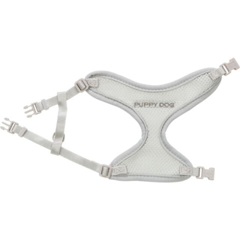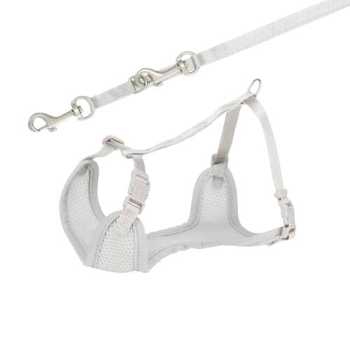 Pentru o plimbare relaxata alaturi de catelus, puteti opta pentru utilizarea unui ham si a unei lese. Hamul este reglabil la gat si la abdomen. Lesa poate fi reglabila in 3 trepte. Masuratori: 26-34 cm / 10 mm. Circumferinta abdomenului: 26-34 cm. Culoare: gri deschis.Lesa: 2,00 m. Potrivit pentru caini juniori de talie mica.