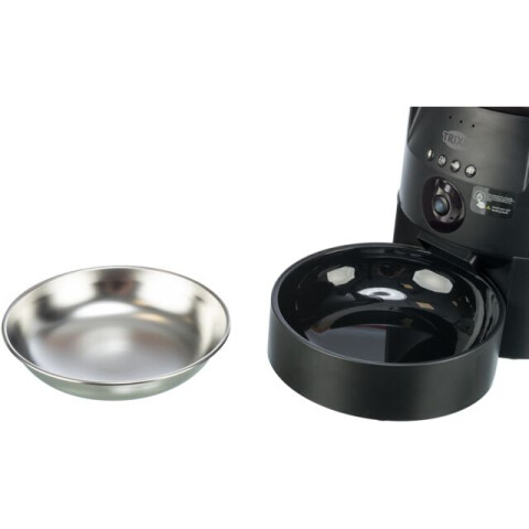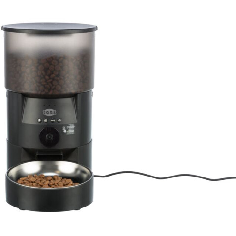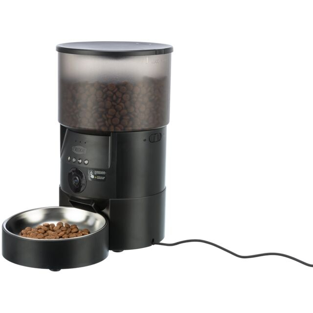 Informatii despre produs: cu control prin aplicatie si camera integrata programare de pana la 10 mese pe zi pentru pana la 3 l hrana uscata potrivit pentru alimente uscate cu dimensiunea de 3-12 mm/crochete control si programare prin aplicatie camera integrata cu unghi larg cu vedere pe timp de noapte in infrarosu si detectarea miscarii permite realizarea de fotografii si videoclipuri in orice moment, precum si videoclipuri in flux live microfonul si difuzoarele permit interactiunea cu animalul de companie cantitatea de hrana poate fi setata individual pe masa de la 1-20 portii (1 portie = 20 ml) distribuirea hranei poate fi setata individual (zilnic sau in anumite zile ale saptamanii), in plus, distribuirea hranei spontane este posibila in orice moment bol si recipient de hrana detasabile Castronul din otel inoxidabil poate fi spalat in masina de spalat vase bateriile optionale asigura alimentarea in caz de intrerupere a curentului (bateriile mono 3D nu sunt incluse) blocare automata de siguranta plastic (ABS)
