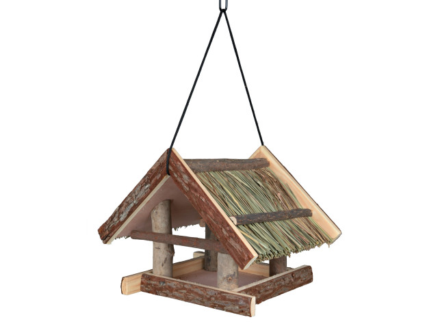 Hranitor exterior pentru pasari Trixie, 25x25x25 cm Hranitoare pentru pasari confectionata din lemn si indicata pentru exterior. In forma de casuta, cu suprafara mare de acces. Avantaje: design natural ce va face ca pasarile sa se simta ca in natura; ideal pentru a putea fi agatat.