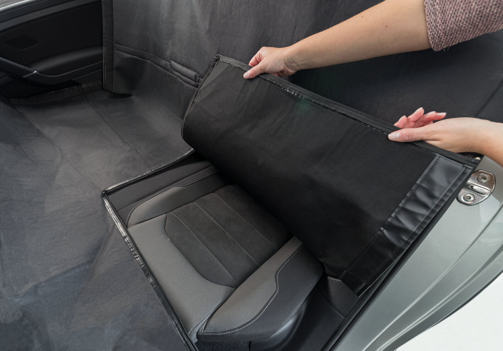 – pentru bancheta din spate. – cu sectiune rabatabila, spatiu pentru o persoana pe bancheta din spate. – cu huse pentru tetiere pentru mentinerea capacului la loc. – deosebit de durabil. – poliester. Important: Pentru o protectie completa impotriva accidentelor, utilizati un ham de siguranta certificat pentru masina.