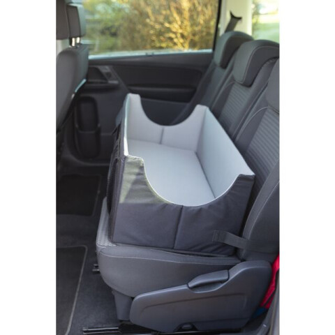 Pentru bancheta din spate Cu curele de fixare pentru a asigura scaunul in vehicul Bucle de centura pentru a prinde pana la doi caini Perna detasabila cu umplutura din spuma Fata de perna detasabila: spalare manuala Pliabil Cu buzunare exterioare Poliester