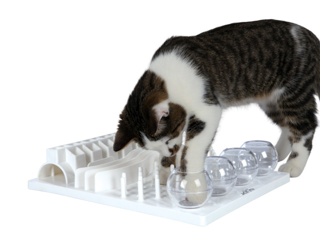 Jucaria Trixie Cat Activity Fun Board antreneaza abilitatile pisicii datorita celor 5 compartimente cu modele diferite. Este recomandata pisicilor cu varsta peste 3 luni. Material plastic, baza antiderapanta cu picioare de cauciuc. Dimensiuni: 30 × 40 cm