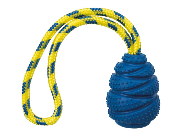 Jucarie jumper pe sfoara, destinata pentru caini. Material: cauciuc natural/bumbac (poliester). Plutitoare. Dimensiune: 7 cm/25 cm. Diverse culori. Selectarea culorilor nu este posibila.