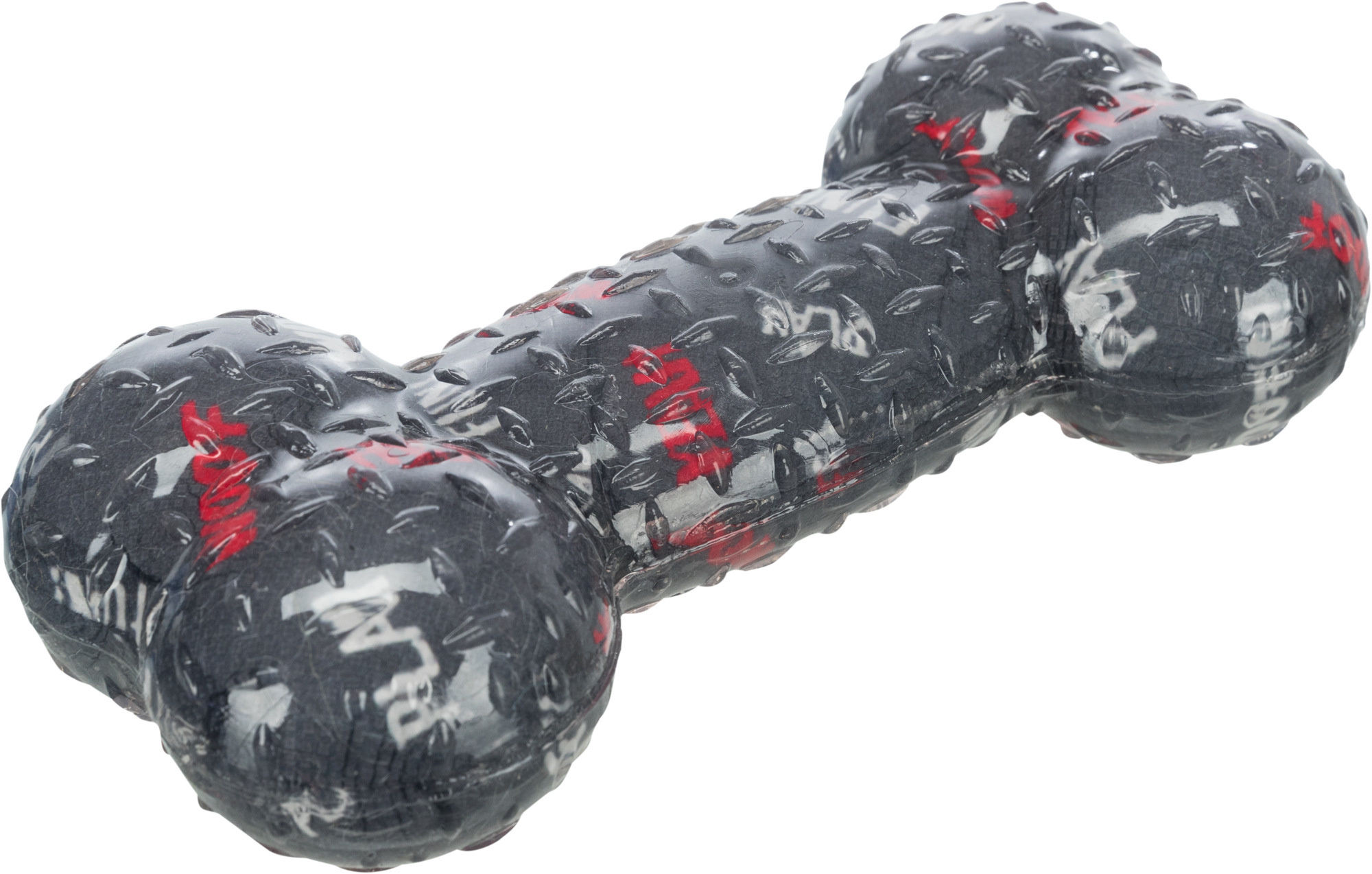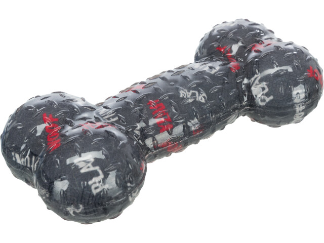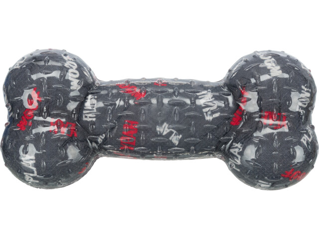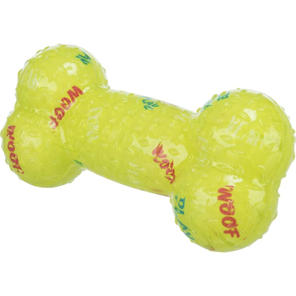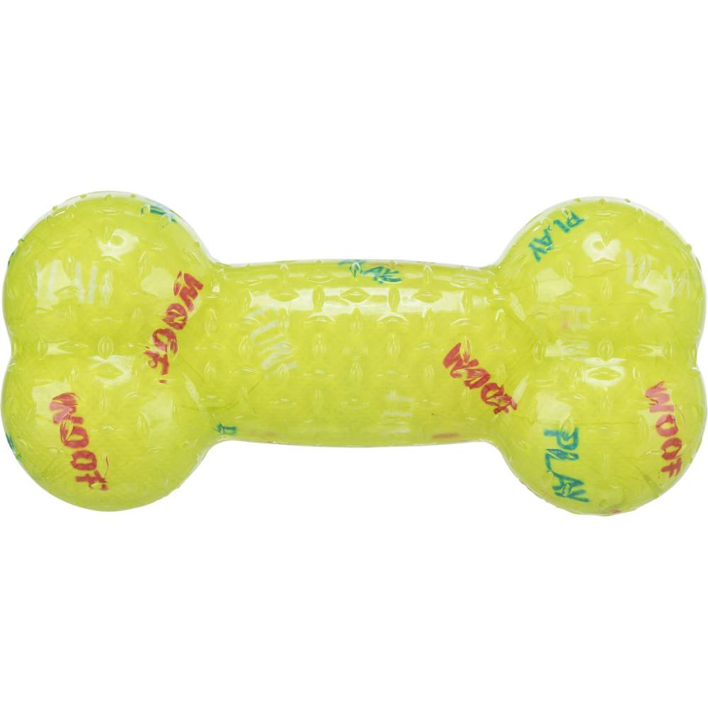 Jucarie sub forma de os, destinata pentru caini. Material: cauciuc termoplastic (TPR). Cu sunet. Dimensiune: 17 cm. Culoare: Lime, gri