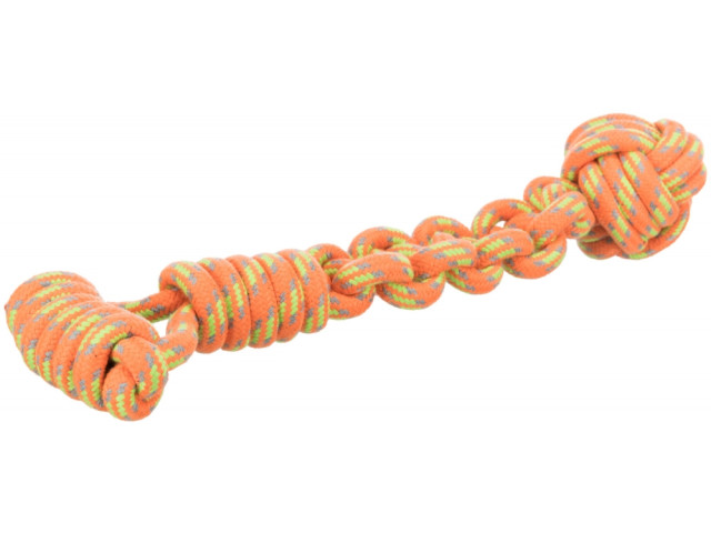 Jucarie perfecta pentru jocuri de forta, destinata pentru caini. Material: poliester/bumbac. Dimensiune: diametru 8 cm, lungime 38 cm.