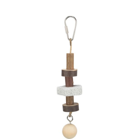 Jucarie din lemn natural si cu piatra de lava. Potrivita pentru ingrijirea ciocurilor. Dimensiune: 16 cm. de exemplu pentru: canari, perusi.