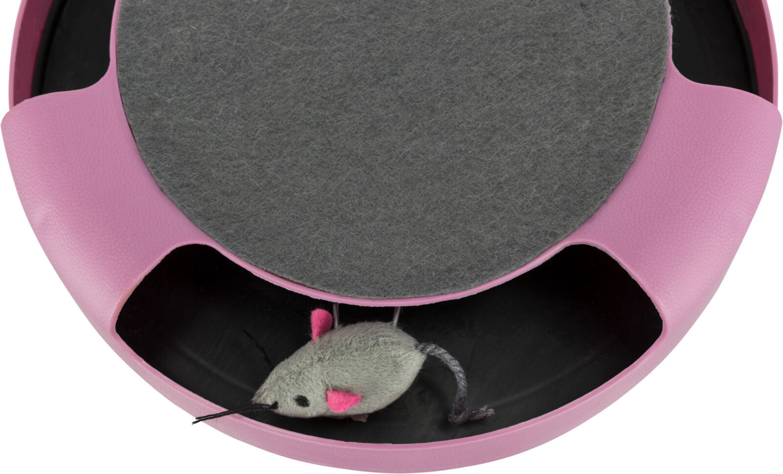 Prinde Soricelul Material: plastic Cu soricelul de plus (poliester) Cu parti pentru zgariat. Masuratori: ø 25 × 6 cm Inaltime: 6 cm Diverse culori. Selectarea culorilor nu este posibila. Depinde de disponibilitatea stocului.