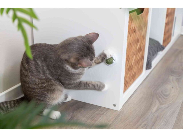 Jucraie cu suport autoadeziv pentru atasarea pe suprafete netede plastic/catnip