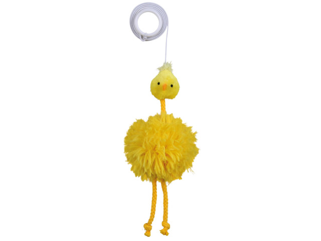 Jucarie pui pe o banda elastica. Material: plus (poliester) Cu clopotel. Dimensiune: 20 cm
