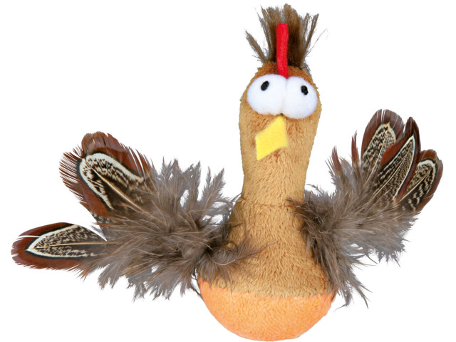 Jucarie de plus (din poliester), cu pene si cu sunet. Stimuleaza instinctul de vanatoare al pisicii.