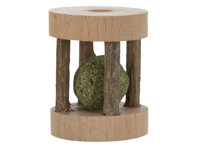 Jucarie sub forma de rola cu minge solida in interior. Material: lemn Incurajeaza jocul datorita plantei matatabi ( vita de vie de argint) si a continutului de catnip. Vita de vie de argint (de asemenea, numit matatabi) este cunoscuta pentru efectul de euforie pe care il produce pisicilor. Reactia la vita de argint este similara cu raspunsul catnip, dar pare a fi mai intensa. Vita de argint este o alternativa excelenta la catnip, iar multe pisici care nu reactioneaza la catnip vor raspunde pozitiv la pulberea de vita de argint obtinuta din grile de fructe uscate Sustine igiena dentara. Masuratori: ø 4 × 5 cm