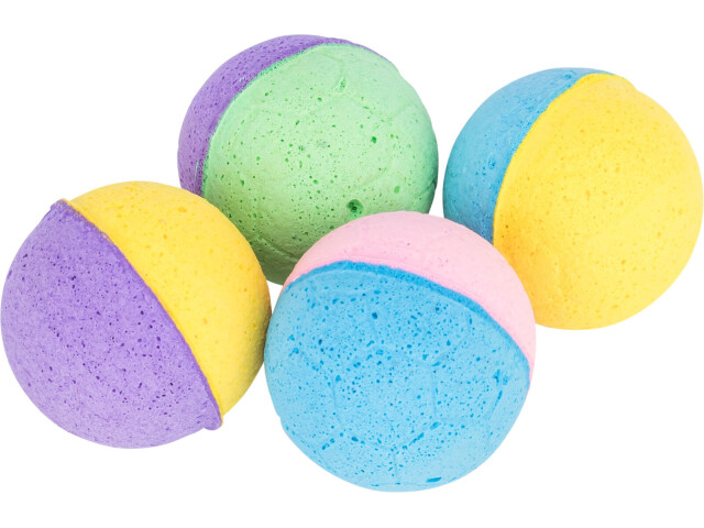 Set de mingi moi potrivite pentru pisici. Material: spuma de cauciuc. Masuratori: ø 4,3 cm Continut: 4 buc.