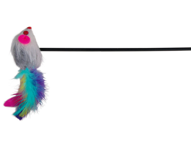 Jucarie cu soarece de plus (poliester) si pene potrivite pentru pisica. Dimensiune: 50 cm