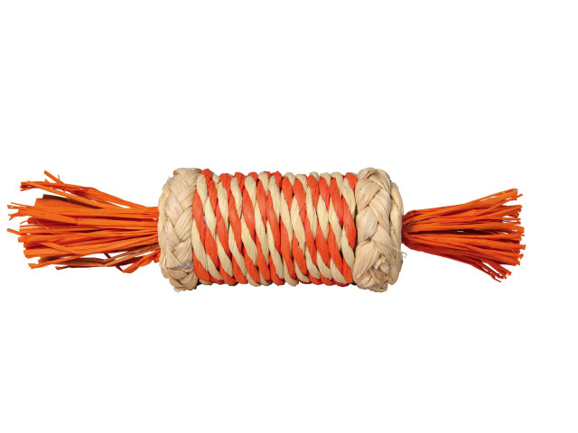 Jucarie sub forma de rola, confectionata din materiale naturale 100%. Jucaria este infasurata in fire de hartie. Masuratori: 18 cm pentru: iepuri, rozatoare mici