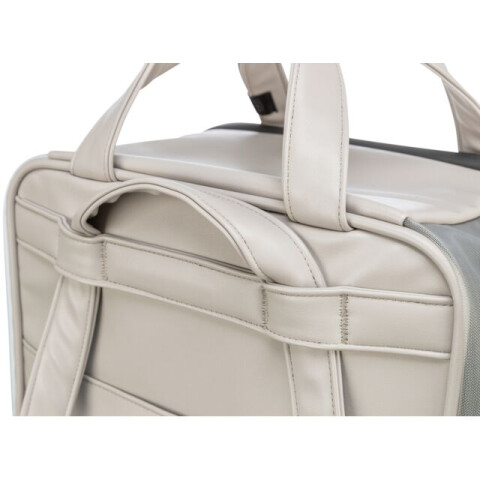 Informatii despre produs: poate fi folosit si ca transportator stabil ca forma cu buzunare exterioare plasa cu ochiuri extra fine ca protectie impotriva insectelor cu lesa scurta integrata baza detasabila durabila datorita materialului reciclat piele artificiala (poliuretan)