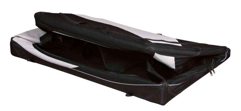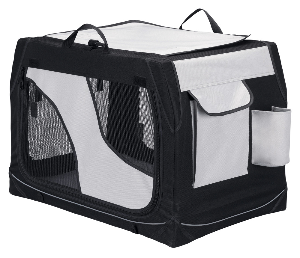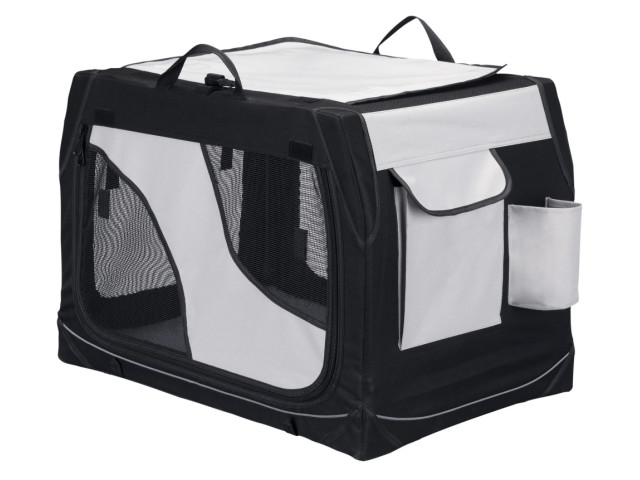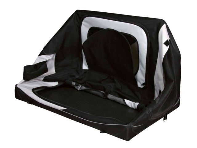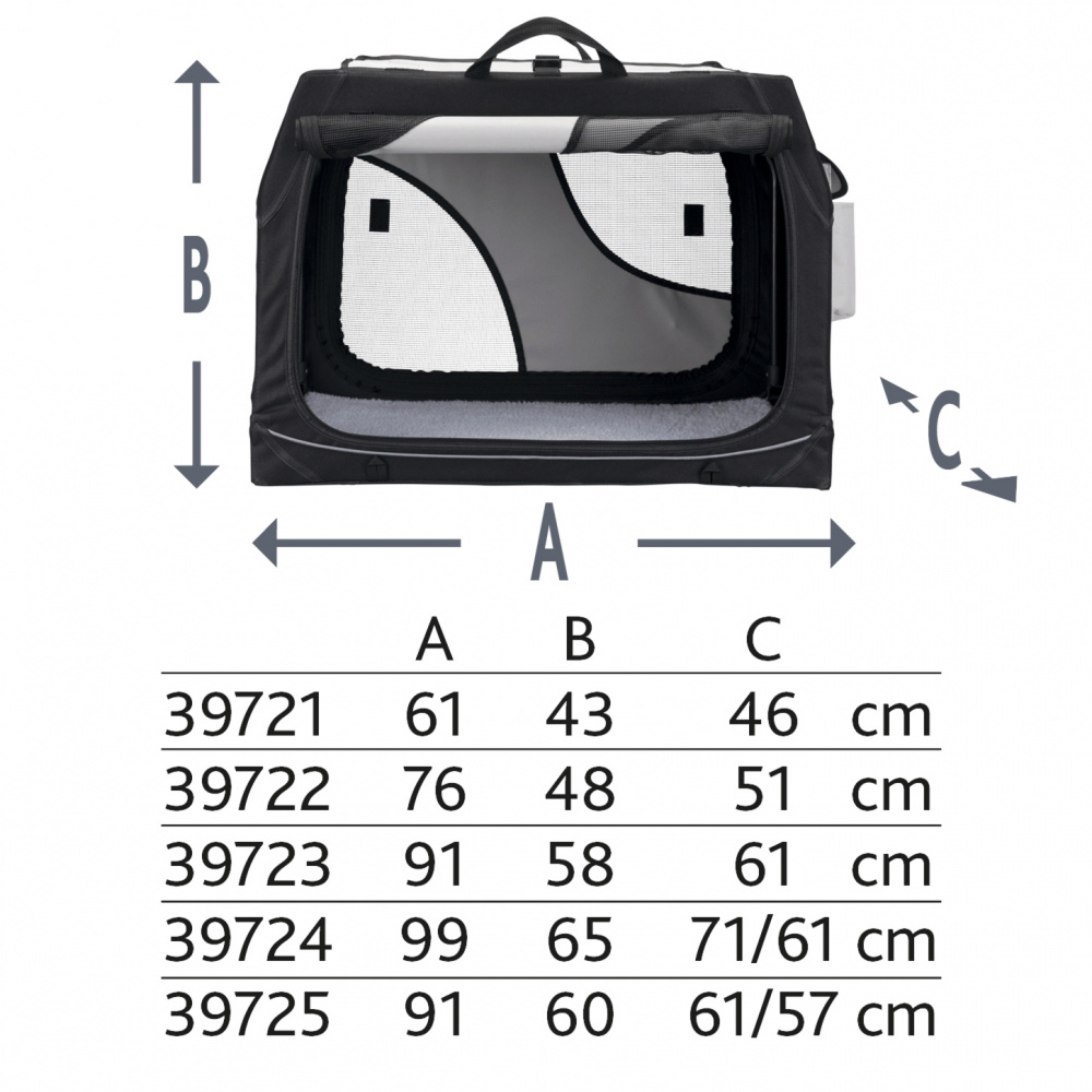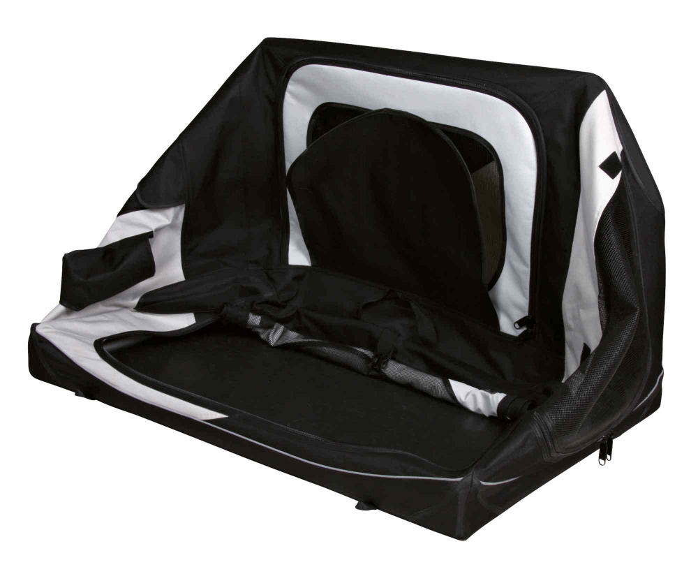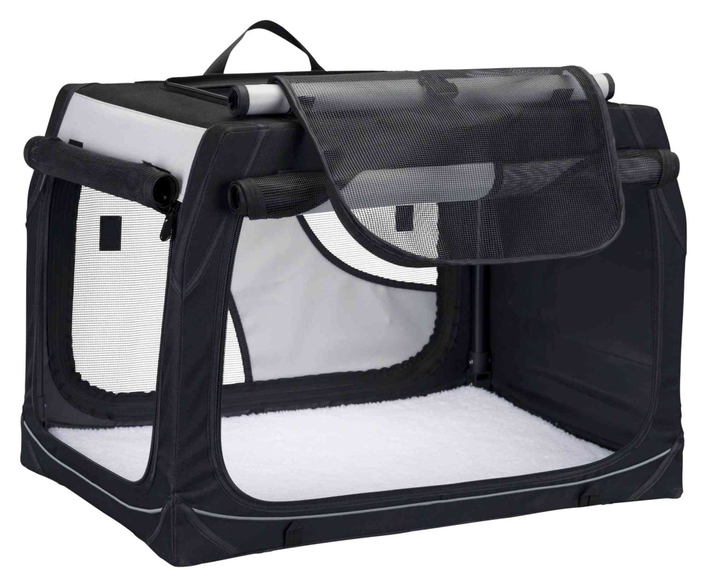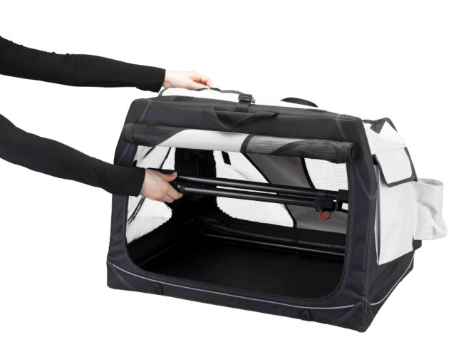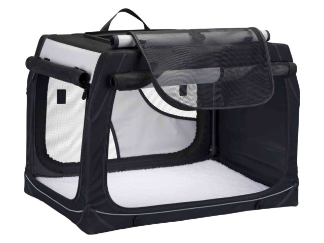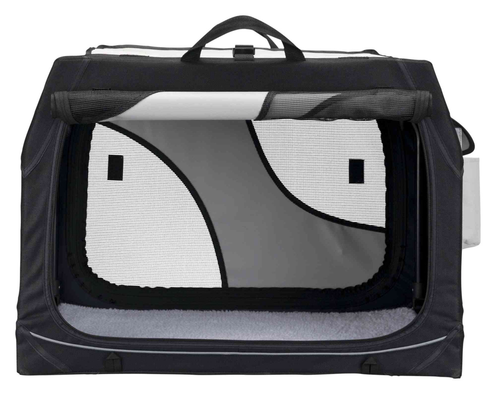 Geanta Vario pentru transportul animalelor de companie in autovehicul. Material: poliester rezistent Stabil datorita cadrului metalic. Poate fi deschisa pe trei laturi. Cu insertii nete pentru o circulatie buna a aerului Suportul detasabil protejeaza bara de protectie impotriva zgarieturilor Poate fi utilizata si in exterior. Cu buzunar lateral si suport pentru sticla. Insertie dragalasa din blana de miel culoare: negru / gri Dimensiuni: 61 × 43 × 46 cm Inaltime: 43 cm