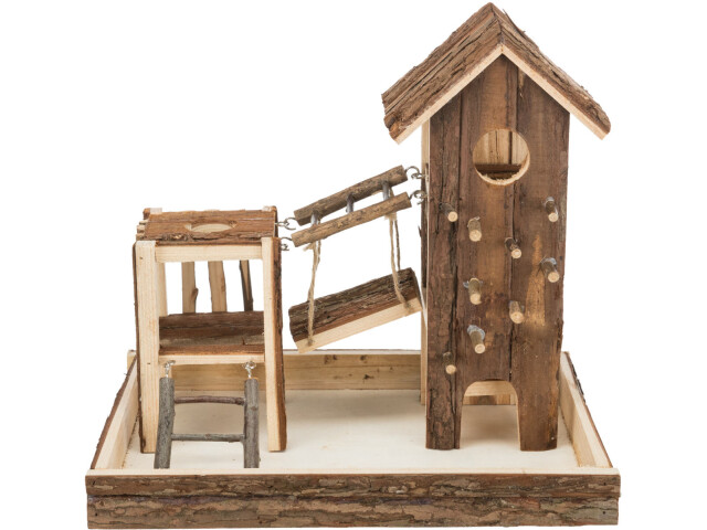 Locul de joaca Birger este destinat pentru rozatoare cade ex.: soareci. Informatii despre produs: cu leagan si pod suspendat lemn de scoarta