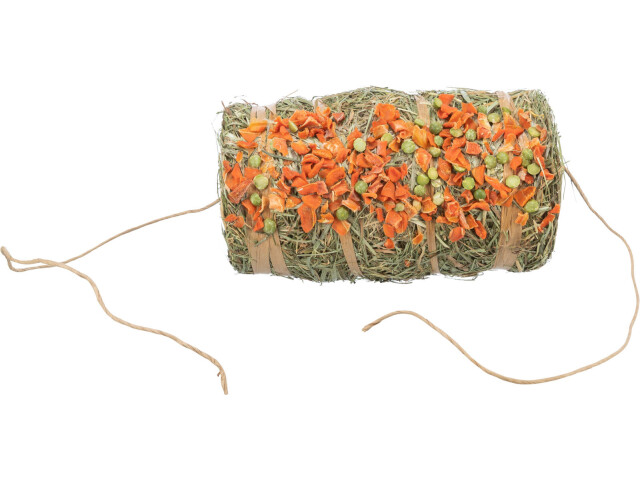 Pendul de fan cu mazare si morcov. Invelit in banda de celuloza. Fara zahar. Potrivit pentru agatat. Destinat pentru rozatoare ca de exemplu: iepuri, rozatoare mici.