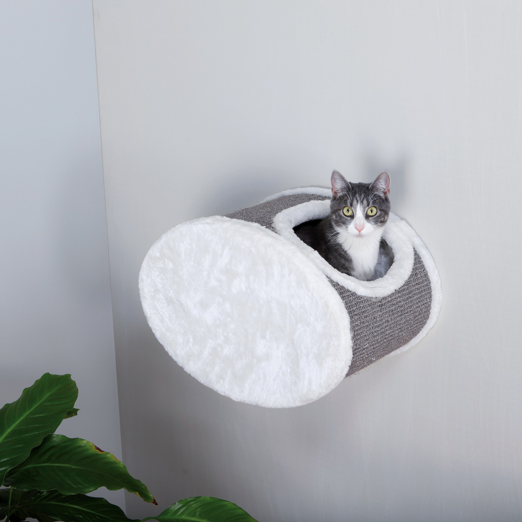 Potrivit pentru peisaje de alpinism. – sisal/plus (poliester): 280 g/m. – pestera complet echipata cu plus (poliester) si cu perna reversibila (lavabila manual). – partea din spate acoperita cu plus (poliester). – culoare: alb/gri.