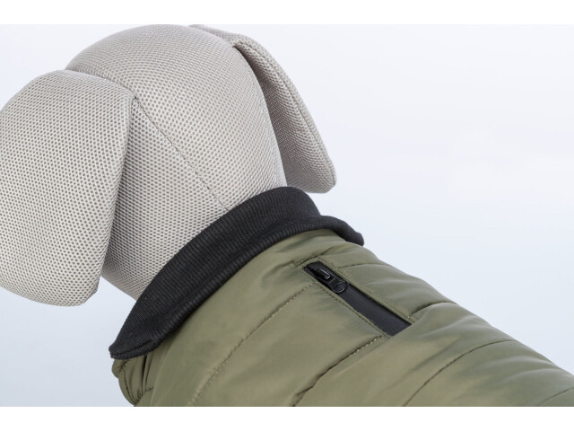 Informatii despre produs: Material: poliester. – cu captuseala din lana. – impermeabila. – poate fi combinat cu ham. Marime:S Circumferinta abdomenului: 46 cm Lungime spate: 33 cm Circumferinta gat: 36-44 cm Culoare: kaki