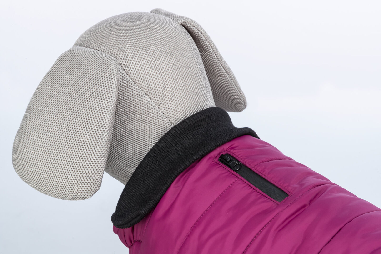 Material: poliester. – cu captuseala din lana. – impermeabila. – poate fi combinat cu ham. Marime:XS Circumferinta abdomenului: 42 cm Lungime spate: 30 cm Circumferinta gat: 34-38 cm Culoare: berry