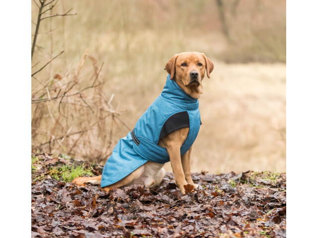 Informatii despre produs: Material: poliester. – cu captuseala din lana si captuseala. – cu doua fermoare impermeabile pentru a se combina cu o zgarda sau ham. – hidrofug si rezistent la vant. – parti reflectorizante .- insertie elastica in zona umerilor. – guler foarte inalt cu snur. – curea de burta cu catarama. – bucle reglabile pentru picioarele din spate. Marime: M. Circumferinta abdomenului: 46-68 cm Lungime spate: 45 cm. Circumferinta gat: pana la 46 cm. Culoare: albastru.