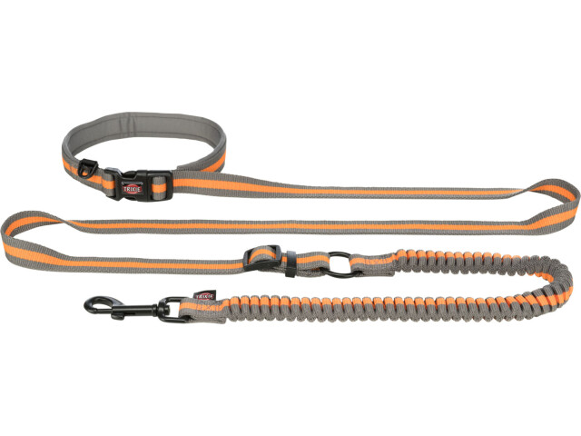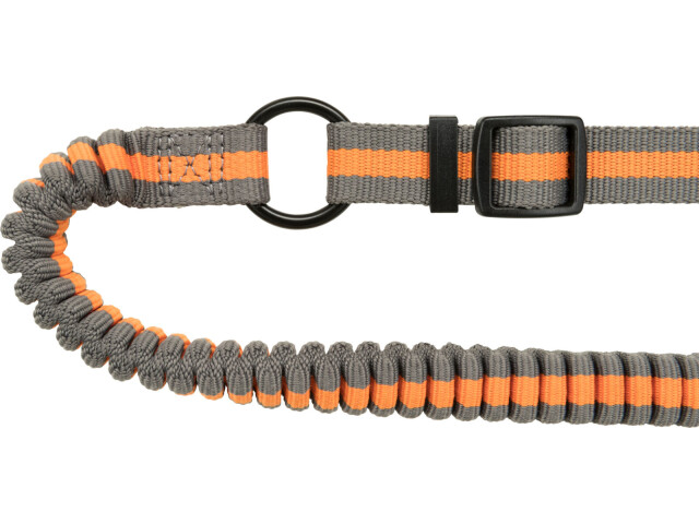 Pentru a atarna sau pentru a fi folosit cu o curea de mana Tragerea sacadata a cainelui este amortizata de amortizoare Reglabil Bucla captusita cu inchidere cu clic