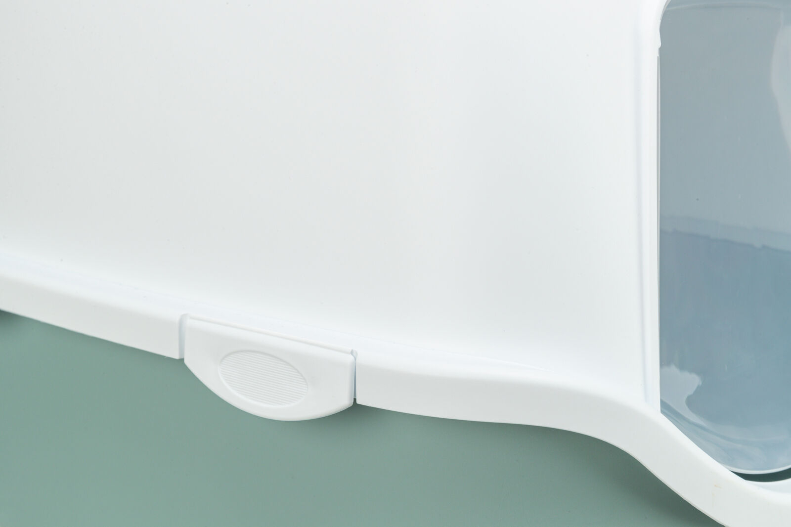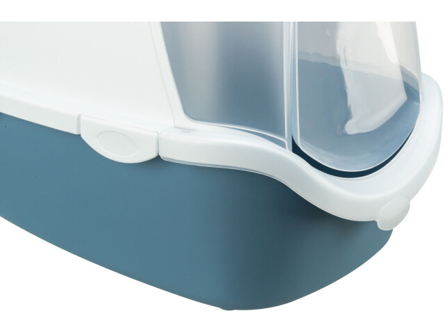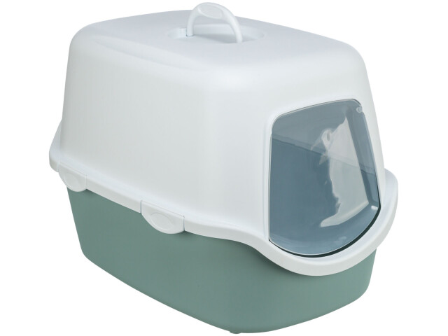 Litiera acoperita este o toaleta care ii ofera pisicutei intimitate si minimalizeaza raspandirea mirosului neplacut. Baza inaltaimpiedica urina si asternutul sa fie imprastiate din tava. Usita rabatabila din plastic transparent. Inchizatoare Easy Click. Material: plastic.