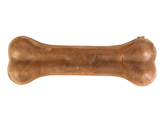 Os din piele uscata ideal pentru ros. Contribuie la curatarea dintilor si intareste gingiile, dintii si maxilarul. Dimensiuni: 10 cm Continut / Greutate: 33 g Recompensa de mestecat sub forma de os presat pentru caini este un produs delicios si sanatos, ideal pentru a satisface instinctul natural mestecat al catelului. Aceasta este fabricata din 100% piele bruta uscata, ceea ce ii confera o textura robusta si un gust atragator. Caracteristici principale: Compozitie naturala: Fara aditivi sau conservanti, acest os presat este creat doar din piele bruta de calitate superioara, oferind o gustare sanatoasa si naturala. Beneficii pentru dantura: Mestecarea acestui os ajuta la curatarea dintilor si la mentinerea sanatatii gingiilor, reducand formarea placii bacteriene si a tartrului. Durabilitate: Forma si consistenta sa confera o durabilitate mare, permitand cainilor sa se bucure de el pe o perioada indelungata, ceea ce il face un companion perfect in timpul liber. Satisfactie si stimulare: Recompensa este ideala pentru a-i oferi cainelui o activitate de mestecare care ii va ocupa timpul, reducand astfel comportamentele distrugatoare si stresul. Atractivitate: Cainii sunt atrasi de mirosul si gustul natural al pielii, astfel incat osul presat devine rapid o recompensa preferata. Aceasta recompensa de mestecat este ideala pentru cainii de toate dimensiunile si rasele, avand grija sa alegi dimensiunea potrivita pentru cainele tau. Este o alegere excelenta pentru antrenamente, rasfaturi ocazionale sau pur si simplu pentru a face cainele fericit!