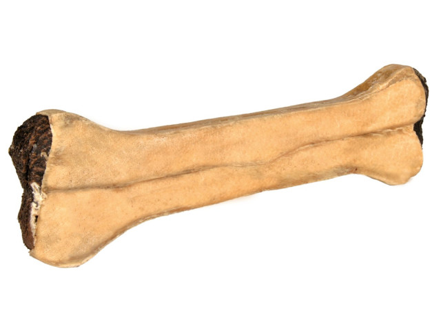 Os de mestecat din piele uscata cu umplutura de burta si verdeata. Compozitie: piele bruta, tripa (40 %) | A se pastra intr-un loc racoros si uscat.. Dimensiune: 21 cm Continut / Greutate: 170 g