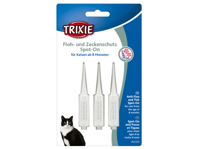 Picaturi antiparazitare din ingrediente active: geraniol, lavanda, icaridina Au un efectul de respingere impotriva puricilor, capuselor, mustelor si tantarilor. Se aplica direct pe animalul de companie. Eficienta timp de 3-6 saptamani. pentru: pisici de la 8 luni Continut: 3 × 1 ml