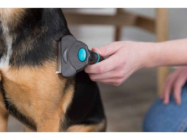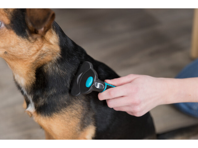 Carding Groomer pentru caini si pisici Descurca si indeparteaza smocul de par. Ingrijire delicata pentru stratul de baza. Usor de inlocuit – capete de ingrijire cu un mecanism de fixare pe maner. Indeparteaza stratul de baza in exces. Pentru a descurca si a slabi usor. Lama din otel inoxidabi Maner din plastic cu aderentadin cauciuc antiderapant.