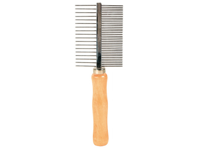Pieptene, dublu. Informatii despre produs: pentru desfacerea si descurcarea blanii dinti medii/lati cu maner din lemn/metal