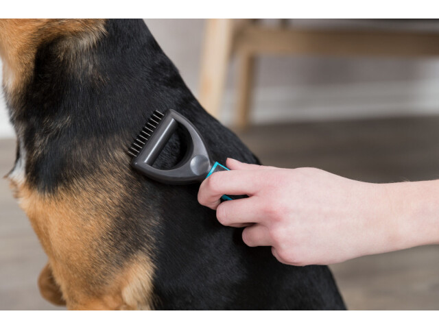 – pentru descalcire si subtiere. – netezeste stratul superior si stratul de baza incurcat. – Lungimea dintilor 1 cm. – maner din plastic cu aderenta din cauciuc/metal. Potrivit atat pentru caini cat si pentru pisici.