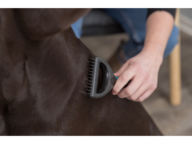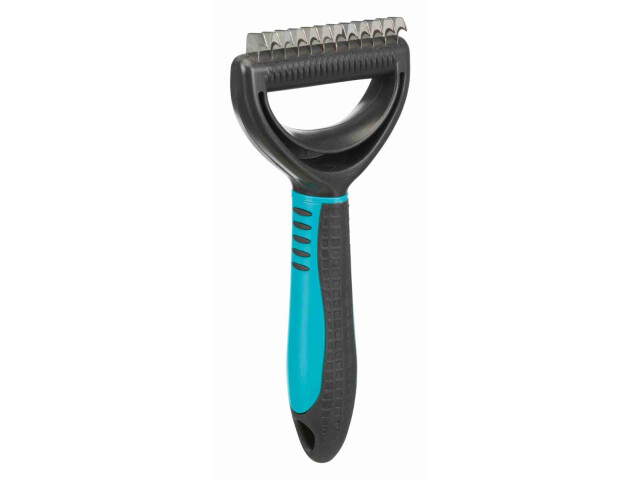 – pentru descalcire si subtiere. – netezeste stratul superior si stratul de baza incurcat. – Lungimea dintilor 1 cm. – maner din plastic cu aderenta din cauciuc/metal. Potrivit atat pentru caini cat si pentru pisici.