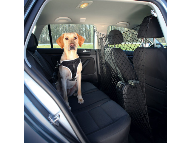 – impiedica cainele sa urce pe scaunele din fata. – diverse posibilitati de atasare. – polipropilena tesuta. Important: Pentru o protectie completa impotriva accidentelor, utilizati un ham de siguranta certificat pentru masina.