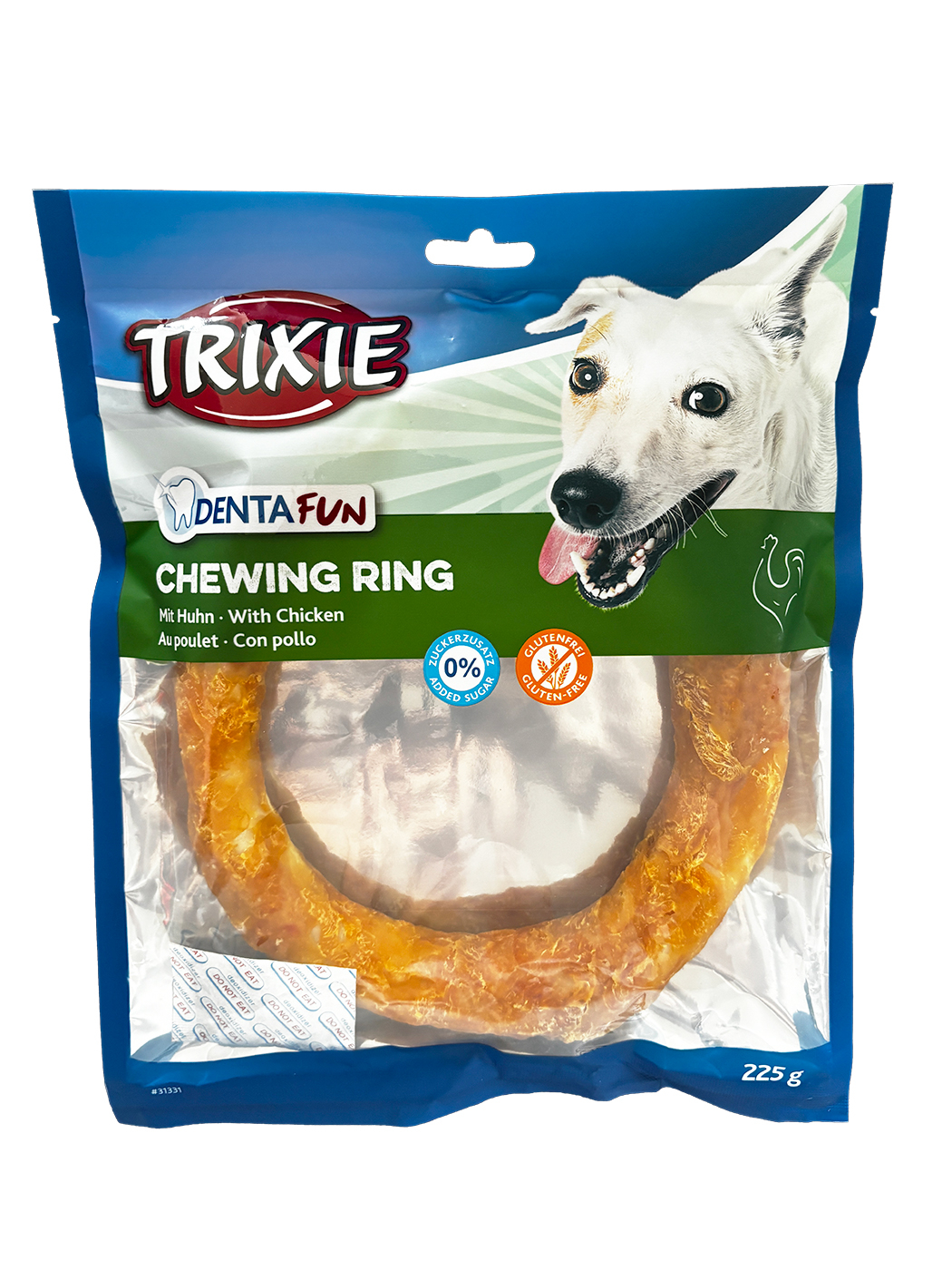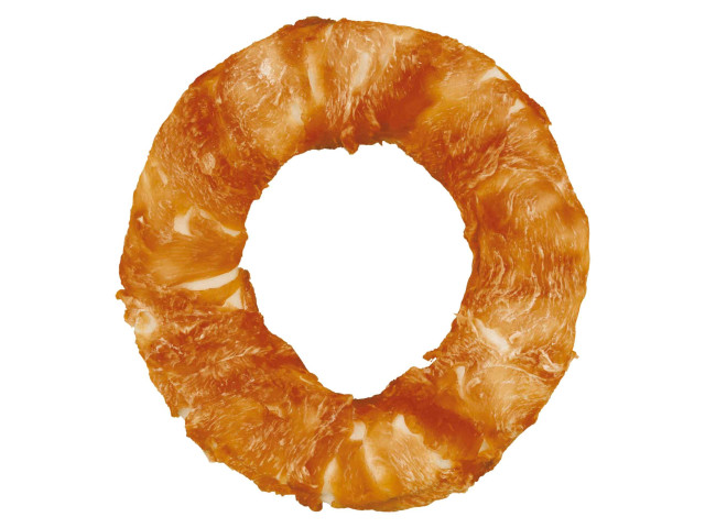 Compozitie: piele cruda, carne de pui (32 %), amidon de cartofi dulci, glicerina | formula fara gluten | fara zahar adaugat | A se pastra intr-un loc racoros si uscat.