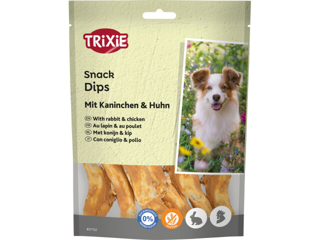 Pulpe si cozi de iepure cu pui Intr-o punga cu gustari Compozitie: carne de pui (40 %), pulpe de iepure cu blană (31 %), cozi de iepure cu blană (25 %), amidon de mazăre, glicerină, minerale | formulă fără gluten | fără zahăr adăugat | A se pastra intr-un loc racoros si uscat.