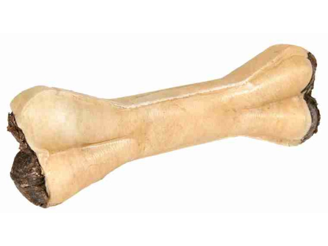 Os de mestecat din piele uscata cu umplutura de burta si verdeata. Compozitie: piele bruta, tripa (40 %) | A se pastra intr-un loc racoros si uscat.
