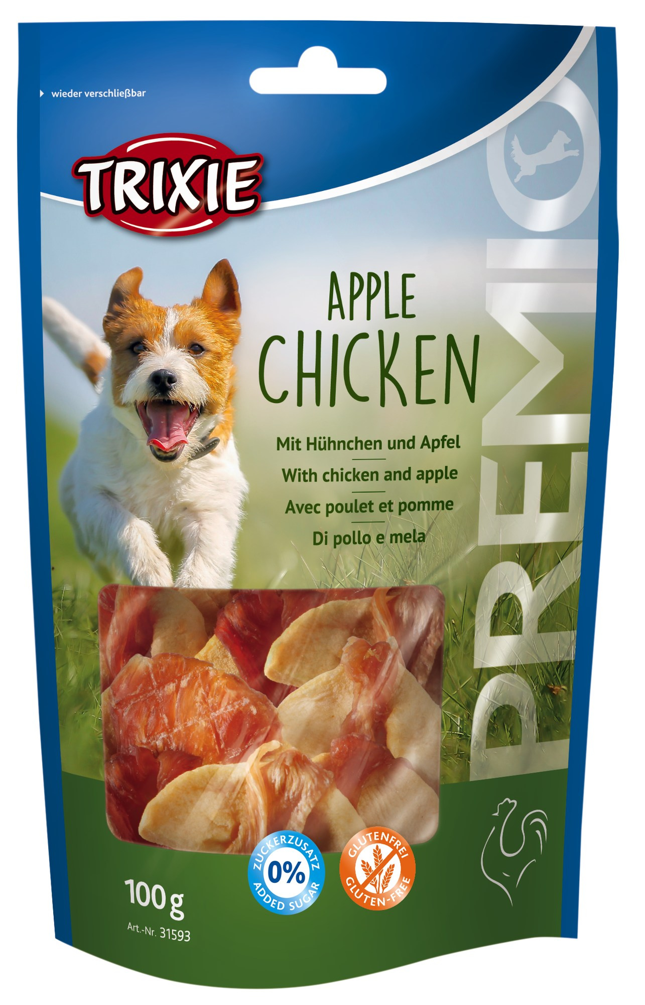 Continut carne de carne: 61%. Cu gust de mar, si pui. Cu multe proteine.