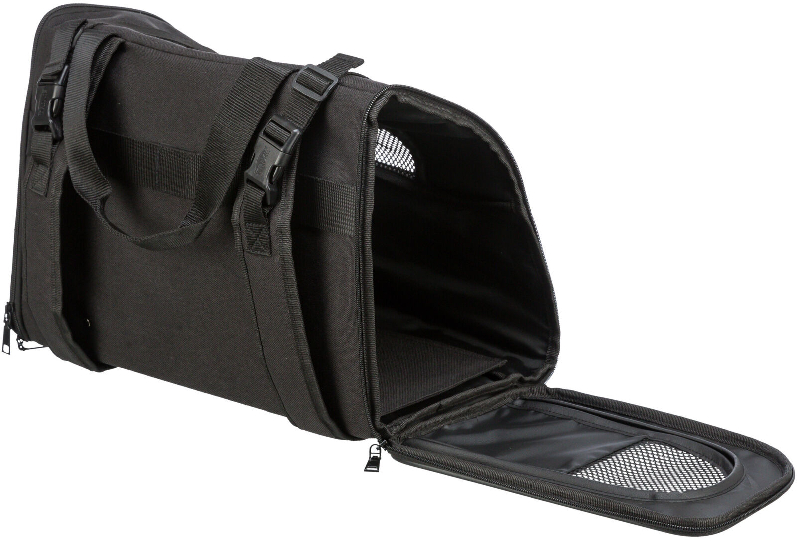 Rucsac pentru animale Trixie Connor, 42×21×29 cm, Negru Beneficii: Material: poliester; Tip deschidere: in fata si in lateral; Cu buzunar frontal suplimentar; Curele de umar sunt ajustabile; Lesa scurta impiedica animalul de companie sa sara din geanta; Cu insertii nete pentru o circulatie buna a aerului; Culoare: negru/gri ; Pana la: 8 kg. Dimensiuni: 42 × 21 × 29 cm. Lungime: 42 cm; Latime: 21 cm; Inaltime: 29 cm.